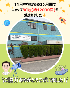 キャップ2㎏で発展途上国の子供にポリオワクチン1人分が寄付される支援事業ですので、15人分のワクチンが寄付されることになりました!