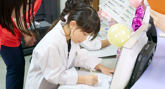 本物みたいにカルテ作りに挑戦。お会計のお仕事にもチャレンジしました。