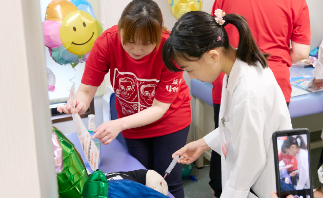 小さなナースさん、大活躍です。ちょっぴリドキドキ注射にチャレンジ!心臓の音、トントン聞こえるかな?